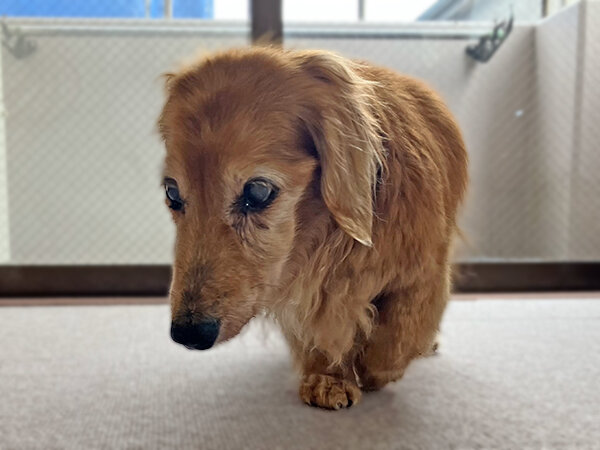18歳のくるみちゃん。足腰が弱ってきてしまい、行き止まりでじっと固まっていたり、