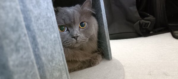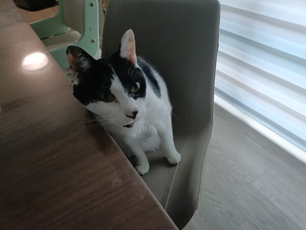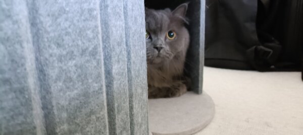 ナラちゃんはかくれんぼされていて、どこにいらっしゃるやらでした🐱シンバくんは、テーブル下に隠れていました🐱