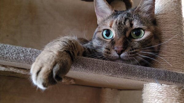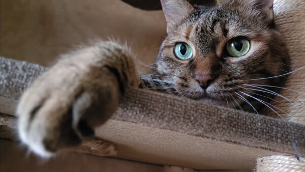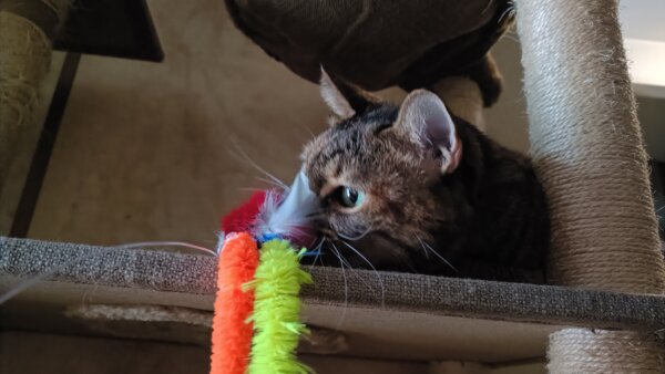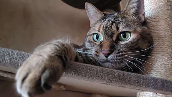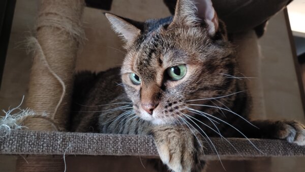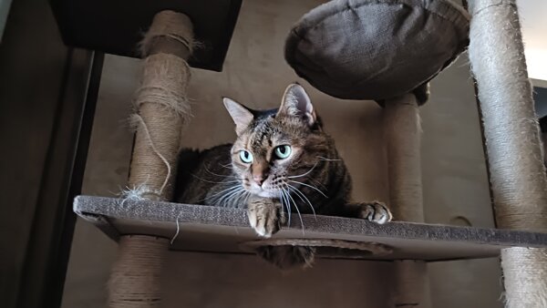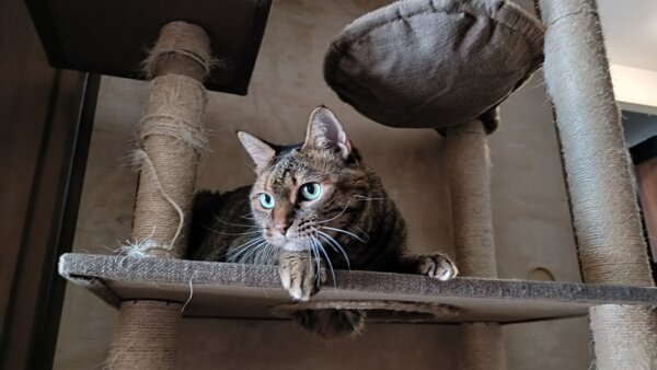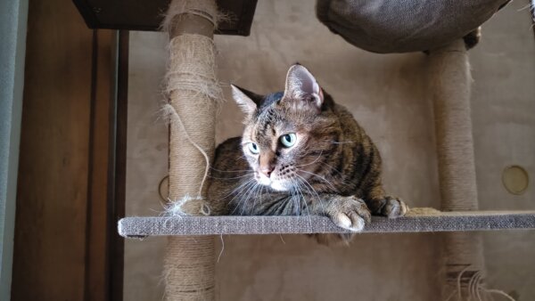 キャットタワーにのぼる麦ちゃん🐱
