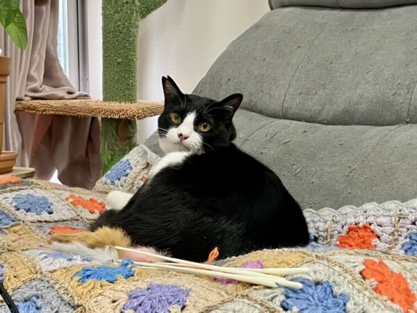 おもちゃで軽く遊んで、大好きなおやつをペロリと完食した後は、お気に入りのベッドへ。