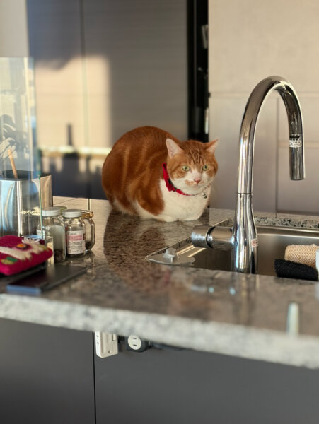 チュールを求めてシッターさんの足元にチョロチョロしている姿が