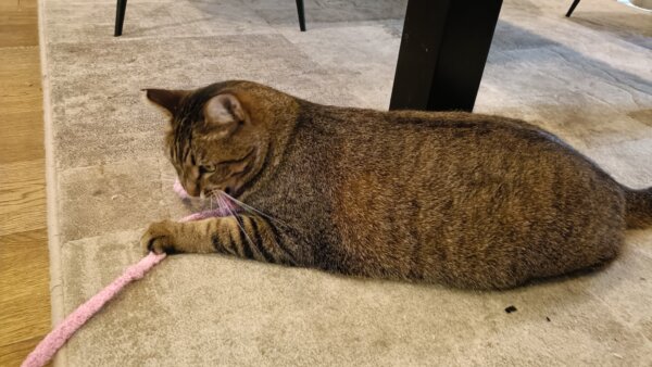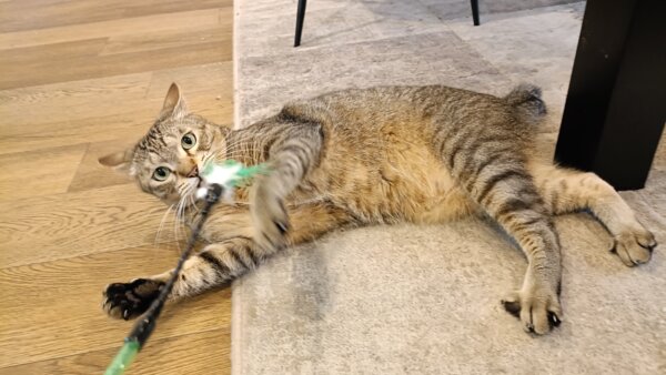 スーパーボールや、ひものおもちゃを追いかけてくれました😊