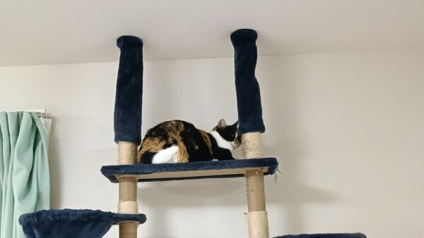 みけちゃんとしろちゃんは、キャットタワーや上の窓辺におられました🐱🐱
