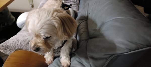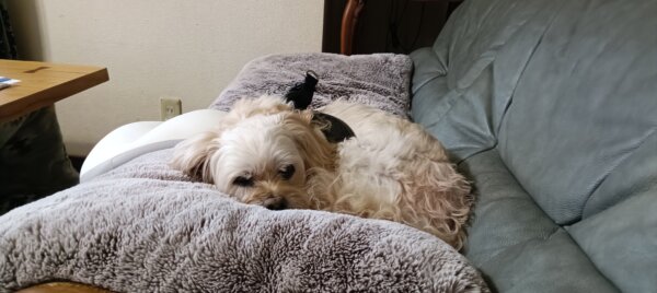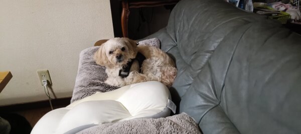 お家にもどりましたら、くーちゃんはソファで休まれています😊
