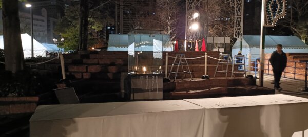 東遊園地へ向かう道中、多くの方々が足早に歩いておられました。