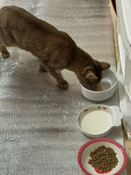警戒心が強くあまり人馴れはしていませんでしたが、ご飯、おやつ、ミルクは美味しそうに食べてくれました。
