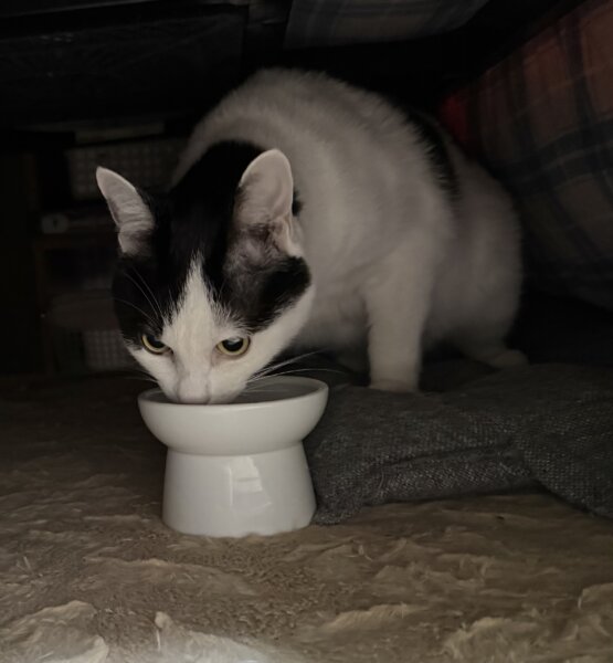 ごはんの準備を始めると黒白の猫ちゃんはスリスリしてくれたり、