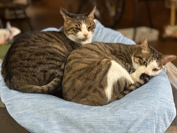 サバ白柄の兄弟猫で、仲良く一緒に寝てる姿が愛らしかったです😍