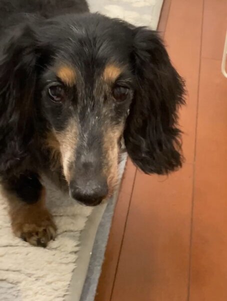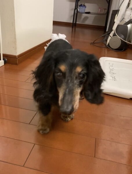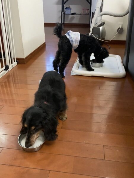 ミニチュアダックスのムーンちゃん19才女の子、トイプードルのえまちゃん男の子9才のお世話に行ってきました。